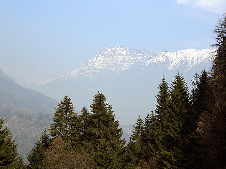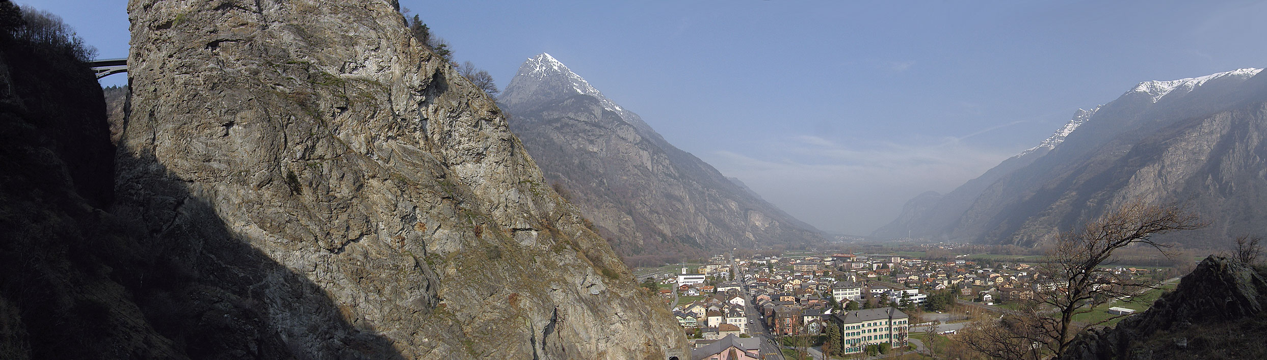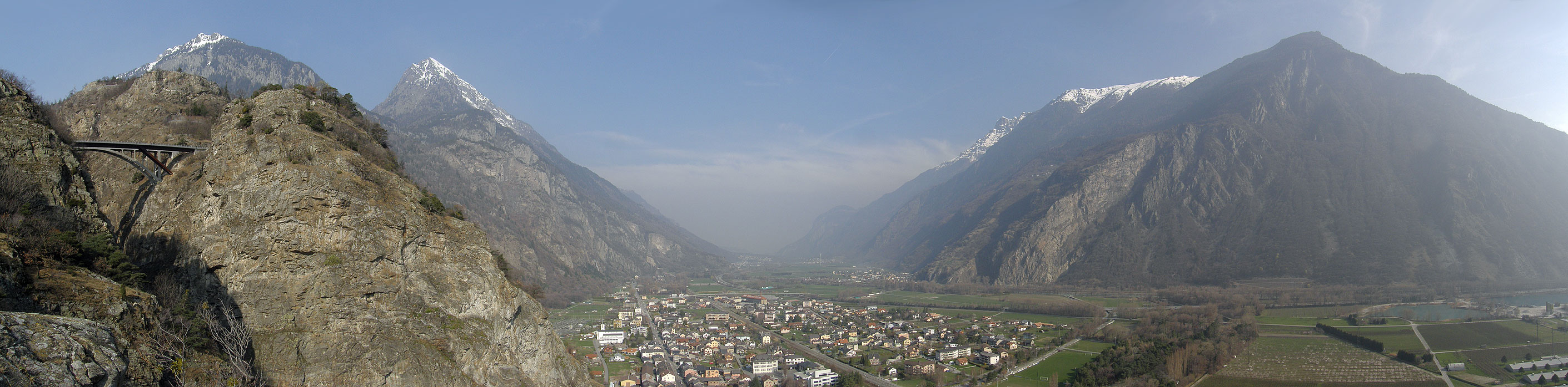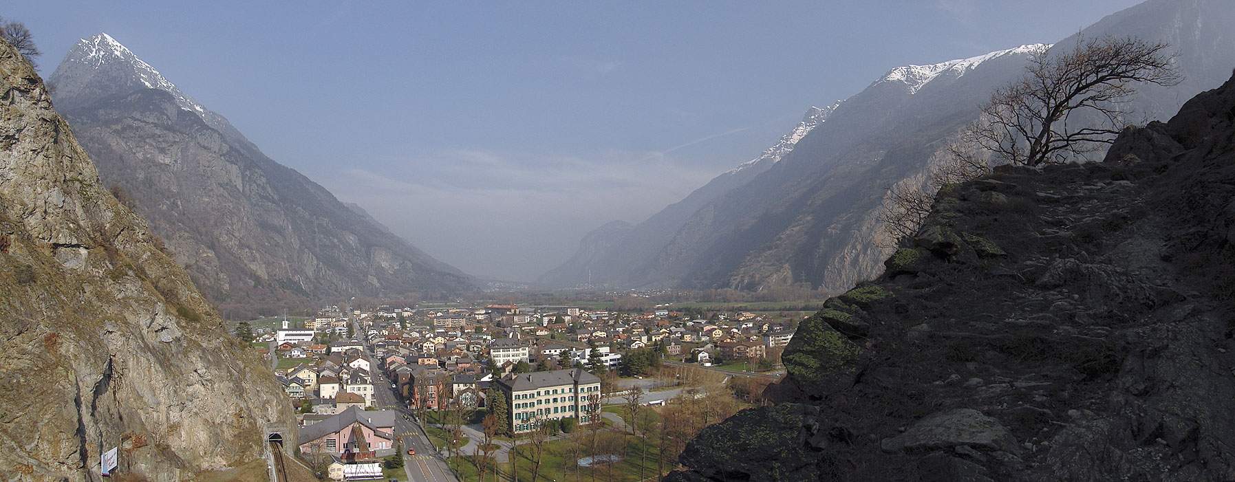 Panorama mit St-Maurice ... und Martigny im Dunstlicht