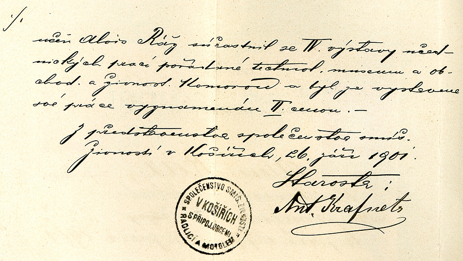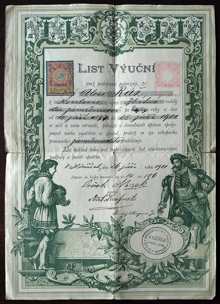 Gesellenbrief 1901 für Alois Ráž